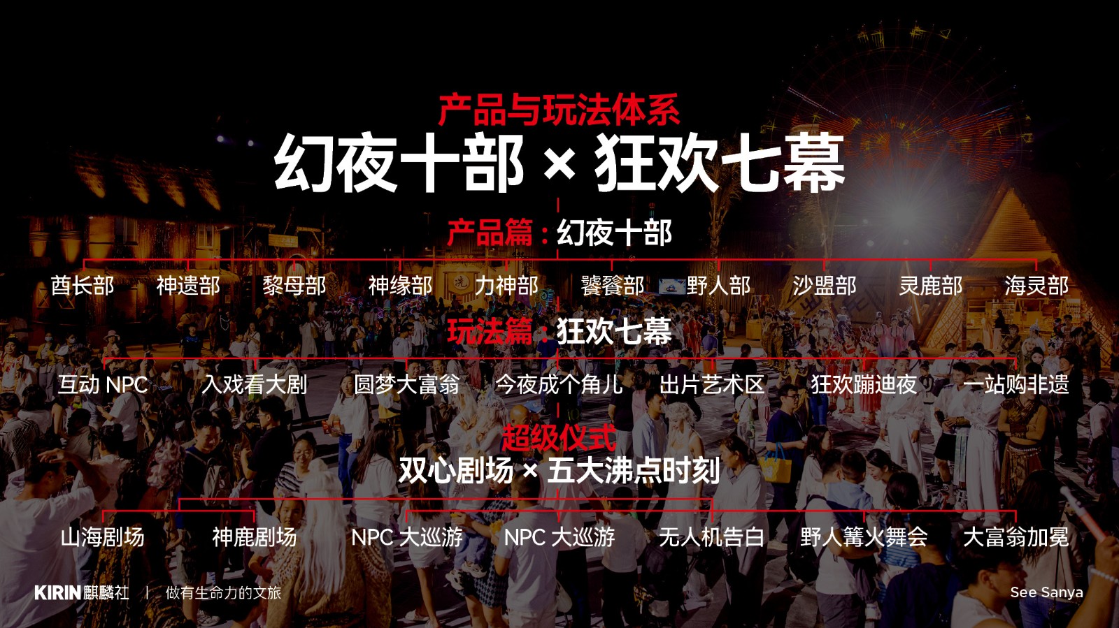 从“部落”源点出发,项目构建起“幻夜十部X狂欢七幕X五大沸点时刻X双心剧场”的产品玩法体系。我们愿以一座“沉浸式夜游部落”,点燃三亚的夜空,让世界看见三亚的另一面,为五湖四海的游客营造一场心动之旅。