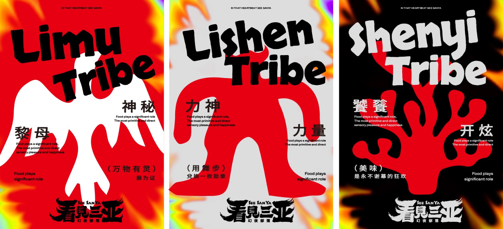 从黎族文化出发,我们寻找到“部落”这一形态,它既提供项目的风貌思路,也是我们试图构建的情绪体验,一个大家玩在一起共创欢乐的夜游部落。
