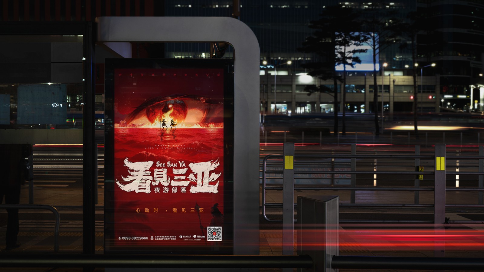 我们以“眼睛+海+火”为视觉核心,塑造品牌形象。在海岛与时空的尽头,黎族小伙阿朗和鹿灵诺雅在火苗映照下手牵手,奔向看见三亚的大门。这场关于爱情、自由与快乐的旅程就要开启。