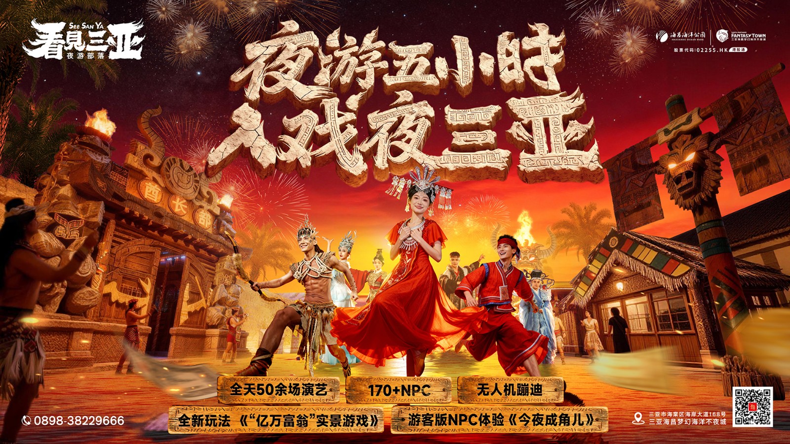 两年后,看见三亚沉浸式夜游部落于海南三亚海棠湾落成。项目以高浓度互动夜游为核心,通过构建主题化场景,高质量演艺大剧,大规模原创NPC,高参与度大富翁游戏等多维度体验,为游客营造一个彻底入戏三亚夜晚的快乐部落。2025年12月6日,看见三亚正式开业。三亚之夜,从此不同!